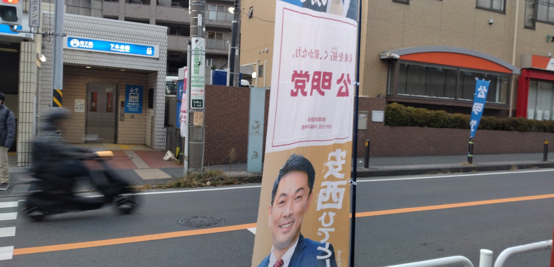 上大岡駅駐輪場前 市政報告配布