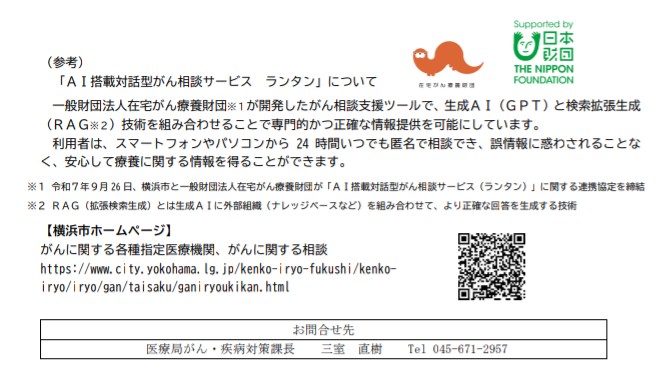 生成AIでがん相談をもっと身近に!「よこはまランタン」スタート