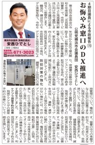 市政報告No170 タウンニュース港南区版に市政報告No170が掲載されました。 当選依頼、毎月続けてきた市政報告も170回となりました。 引き続き、市政課題・地域課題解消に取り組んでまいります。