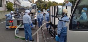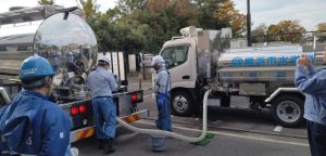横浜市と横浜運送株式会社による大型タンクローリー車を活用した災害時等の給水に関する協定が締結されておりますが、締結後の初めての給水訓練が実施されましたので、視察をさせていただきました。 横浜市では給水車が19台ありますが、能登半島地震での活用事例などを参考に、公明党市議団より「民間の大容量タンクローリー車による運搬給水も備えとして必要」と提案していたものです。 病院など大量の水を必要とする施設への給水や中継給水などへの活用を想定しているとのこと。 また、想定外な事態にも関係者のチーム力で災害時の飲料水確保をしっかり行っていく姿勢に頼もしさを感じました。