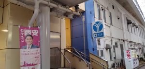 市政報告配布:上大岡駅駐輪場前