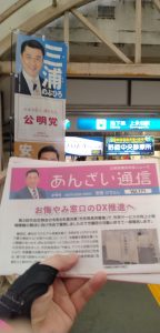 港南中央駅にて市政報告配布